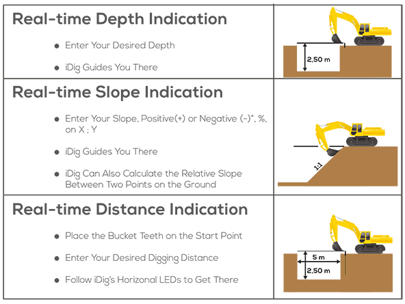 iDig gives you affordable bucket position indication for all excavating equipment with 3 easy steps: